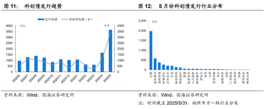 另一方面,中国证监会公告〔2025〕8号文,加大科技创新债券发行支持力度,拓宽科创债发行主体,新增商业银行、证券公司、金融资产投资公司等金融机构,短期来看5月科创债新政之后,科创债发行短期迎来小高峰,预计未来科创债将持续扩容,但是从5月份发债主体来看,主要是以证券公司、商业银行为主,科创型企业未见明显放量,而前者同时受内部可投项目限制,预计科创债短期对债市供给影响较小,对债市资产荒缓解有限。
