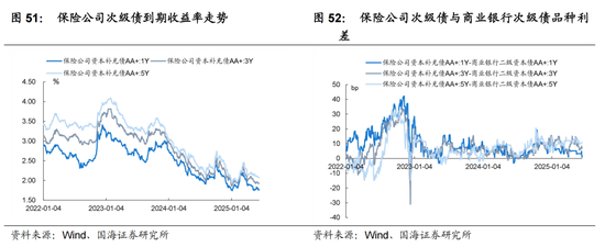 相对于商业银行次级债来看,短端保险公司次级债目前估值性价比并不高,3-5Y保险公司次级债相对有一定性价比,但保险公司次级债受制于流动性相对较弱,不建议过度下沉和拉久期。