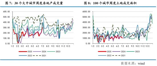 土木工程回落但建筑业整体回升,推断房地产建筑景气度环比应有改善。高频数据显示,房企加快冲半年业绩,6月以来30个大中城市新房成交量环比回升,100个大中城市土地成交面积同样环比回升,但两项指标同比均为下降,且降幅较上月扩大,显示地产市场仍在寻底阶段。另外,6月成交土地溢价率下降至3.2%,为今年以来最低水平,土拍市场热度仍显不足。