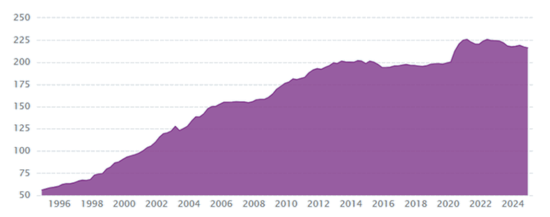 [9]https://www.ceicdata.com/en/indicator/japan/government-debt--of-nominal-gdp#:~:text=Japan%20Government%20debt%20accounted%20for,Dec%201994%20to%20Dec%202024.