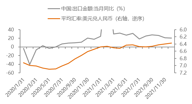 三是我国产业链供应链优势将一定程度上弱化人民币升值的不利影响。2020-2022年经历了人民币升值周期,人民币对美元汇率从7.1升值至6.3左右,但全球疫情背景下中国供应链优势明显,出口额保持两位数增长,说明汇率并非影响出口的唯一因素。