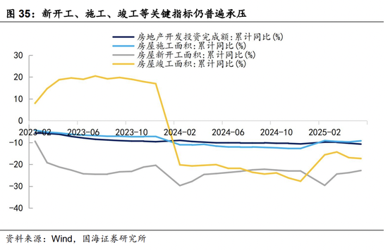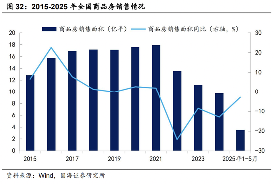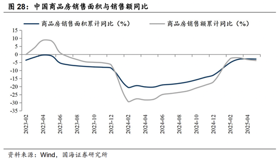 展望下半年,政策的持续发力与结构性力量将形成托底。一是专项债收储土地,根据中指不完全统计,截至6月25日,全国各地公示拟使用专项债收回收购存量闲置土地的数量超3700宗,总用地面积约1.96亿平方米;二是存量房去库存,城中村改造通过“货币化安置+房票安置”方式,使居民可直接到现有的商品房市场选择合适的房子,有利于消化存量商品房,助力去库存。值得关注的是,房地产销售企稳,1-5月商品房销售面积同比下降2.9%,降幅较2024年同期大幅收窄,“好房子”建设及核心城市优质地块供给,正成为结构性托底力量。这些积极因素若能有效带动开发投资企稳回升,将重新激活产业链传导效应,对上游原材料需求和下游关联行业形成有力支撑,进而促进整体经济循环的改善。