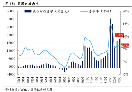 未来,中国政府仍有较大的举债空间。从负债水平看,债务风险可控。截至2024年末,中国政府部门法定债务余额82.1万亿元,负债率为60.9%,显著低于主要经济体和新兴市场国家。同时,我国债务主要用于资本性支出,很多资产正在产生持续性收益。此外,2023年末全国国有企业净资产131万亿元、国有金融企业净资产47万亿元、行政事业性国有净资产51万亿元,筑牢债务安全“防护堤”。从利息支出看,举债空间大。2024年,我国一般公共预算支出中债务利息支出1.3万亿,与一般公共财政收入比值为5.9%、与GDP比值为1.0%,而美国的债务利息支出与财政收入比值17.9%、与GDP比值为3.0%。从国际比较看,赤字空间大。对于美国,1984-2023年这40年美国联邦政府财政赤字率年均值为3.8%,有24个年份超过3%。对于德国,1991-2023这33年时间里有13年赤字率超过3%,尤其是1995-2005年间经济乏力,这11年平均赤字率为3.5%、有7年在3%及以上。而我国官方赤字率2022年2.8%、2023年增发国债后升至3.8%、2024年3.0%。