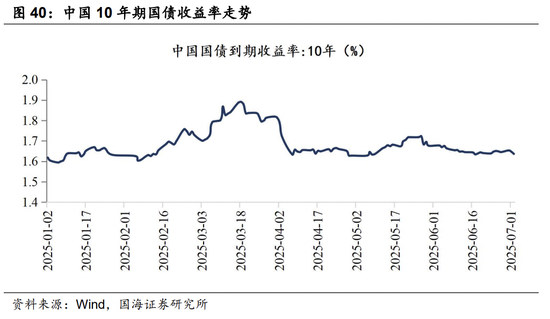 展望下半年,降准降息仍有空间。一是二季度货币政策委员会例会重申“适度宽松”、“加强逆周期调节”,同时也提及“提高资金使用效率,防范资金空转”,预计流动性总体保持适度宽松。二是外部环境变化改善政策空间。今年二季度货币政策委员会例会提及“增强外汇市场韧性,稳定市场预期,防范汇率超调风险”。上半年,美元指数大幅走弱,截至6月30日美元指数报96.7723,较年初下跌10.8%,带动大部分非美货币被动升值。美联储降息预期下,人民币汇率压力减轻,为国内货币政策打开空间。