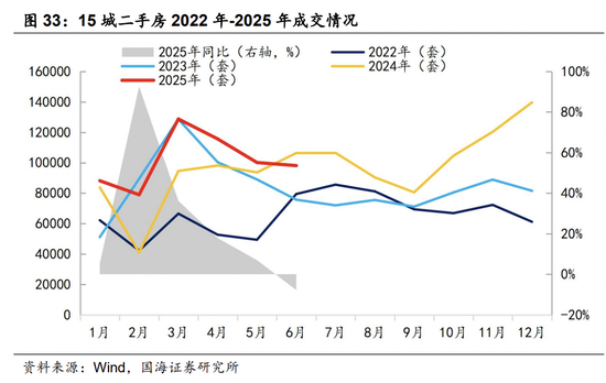 中长期转型趋势明确。行业正从增量开发转向品质升级与存量交易主导,呈现“新房价升量减、二手房价降量增”特征。新房自2022年,连续3年成交面积下降,2025年5月开始,新房市场成交面积同比增速呈现降幅扩大的趋势;监测15城二手房成交套数自2023年连续两年上涨,2025年1-6月同比增长18%。新房房价指数同比降幅仍在连续收窄,二手房价格环比降幅加深。主要原因,一是新房品质升级拉开代际差。二是二手房性价比优势凸显。