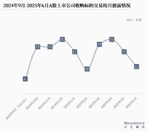 以首次公告作为统计口径(包括提示性公告/停牌公告),2024年9月24日后至2025年6月30日上市公司新公告的发行股份或现金重大资产重组收购标的资产(以下简称“新公告交易”)有163起。按照首次披露时间划分,具体情况如下表所示: