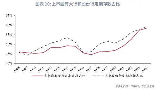 与其他经济体的银行业在低利率环境下的经营情况相比,我国银行业当前面临两大不同条件,对负债成本下行形成了制约:一是更严重的存款定期化,不仅居民存款定期化,企业存款、同业存款的定期化比例都在进一步上升;二是面临更严格的监管指标,巴塞尔III下更严格的监管指标,加剧了拉长资产久期和降负债成本的矛盾,相关规则于近年来才逐步落地,这是其他国家银行业在低利率时期并未经历的。