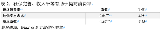 本文在回归分析中发现,社保支出占比和基尼系数对最终消费率的影响显著。回归结果表明,社会保障和就业支出占比对最终消费率的系数为0.64,基尼系数为-1.69,且二者均在1%的显著性水平下成立。这一结果验证了社保完善有助于提高消费率且收入不平等会抑制消费的理论预期。具体来看,社会保障支出越高,居民未来预期越稳,消费意愿越强;而收入分配的不平等会强化预防性储蓄动机,抑制中低收入群体的消费能力,从而对整体消费形成制约。因此,需求端提升消费倾向发力要以重视保障体系与分配结构的同步优化为抓手。