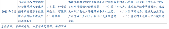 一是2015年前后,以地方性调整为主,例如2015年7月山东省,提出“因不可抗力,造成生产经营严重困难,无力支付职工最低工资连续6个月以上的…因不可抗力,造成无法正常生产经营6个月以上,职工仅发生活费的…其它因法定事由可以缓缴的情况。”,可申请缓缴社保6~12个月。