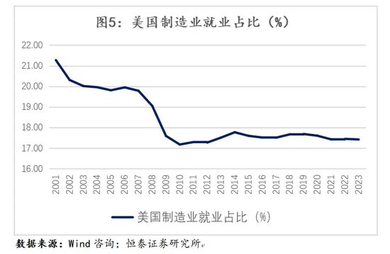 根据全球多个经济体的数据分析,发现当工业化完成后,会进入一个去工业化的过程,这个过程是不可逆的。从理论上看,根据巴拉萨-萨缪尔森定律,在各国内部工资均等化的作用下,生产率较高的国家服务业价格水平将更为昂贵。从资本逐利的角度而言,人们更倾向于从事高附加值的服务业,从事过年收入10万美元的水管工职业,就不愿进入工厂从事年收入3万美元的拧螺丝工作。因此,经济规律决定了美国的再工业化进程面临极大难度。另外一个例证便是波音公司,作为美国制造业的标杆企业,其衰退态势已清晰可见。类似的例子还有很多,在此不再一一列举。无论是现实经济规律还是具体案例都表明,美国试图通过“关税+减税”政策实现工业化,虽可能带来一定边际改善,但要重新成为制造业中心或恢复昔日制造业地位,基本难以实现。