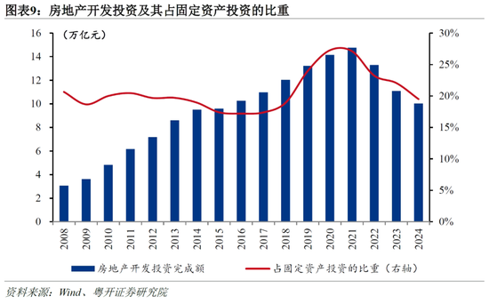 若考虑房地产上下游产业链的建筑、建材、家电、家具以及金融、商务服务等行业,房地产对经济的拖累将更为明显。例如,2025年上半年房地产投资中建筑工程投资同比下降13.4%,降幅较2024年全年的10.3%进一步扩大,相应地,建筑业对GDP增长的拉动也由2024年的0.26个百分点降至2025年上半年的0.04个百分点。