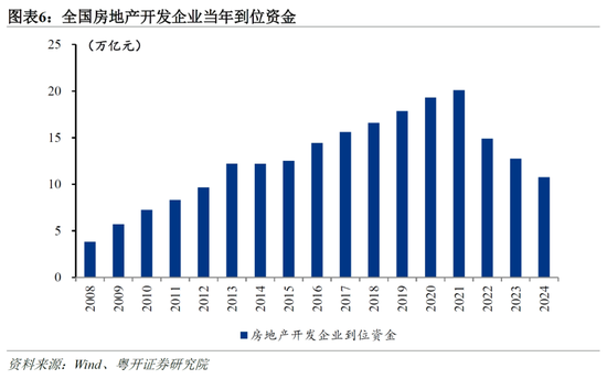 其五,上半年房地产开发企业当年到位资金相当于2021年同期的一半左右。2025年上半年,房地产开发企业当年到位资金5.02万亿元,同比下降6.2%,降幅较2024年全年的17.0%明显收窄。但房企资金压力依然较大,上半年到位资金仅相当于2021年同期的48.8%。按来源划分,受城市房地产融资新机制支持,国内贷款同比增速由负转正;而企业自筹资金、定金及预收款、个人按揭贷款资金同比继续下降。2025年上半年,企业自筹资金、定金及预收款、个人按揭贷款资金分别仅相当于2021年同期的58.2%、37.3%和41.9%。