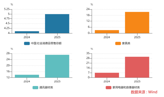 2025年上半年供需改善的核心动力来自需求端。一是政策与市场共振推动我国消费需求有所改善。2025年上半年,以消费品以旧换新为代表的消费刺激政策,通过激活存量需求、撬动增量消费,有力带动消费持续回升向好。我国社会消费品零售总额增速较去年同期有所加快,同比增长5%,其中家电、家具用品、数码产品等以旧换新政策重点支持领域的销售增速较去年同期更是增长明显。
