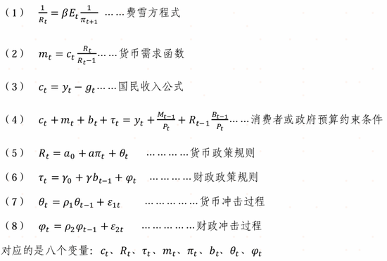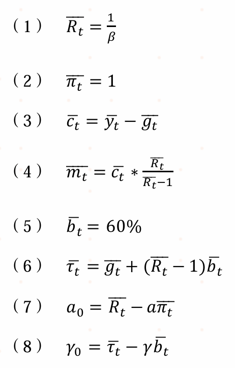本文基于上述理论建立的DSGE模型,全部使用八个模型函数,分别是:
