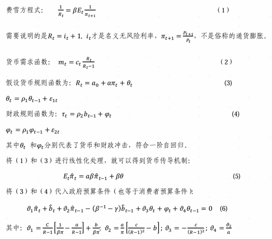 我们以Leeper(1991)的模型为基础,探讨FTPL理论的影响。该模型政策分为“主动”和“被动”,其区别在于对通胀和政府加杠杆的响应程度。