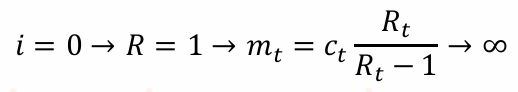 其中h为连接货币供给增速与通胀的系数,在流动性陷阱中,货币需求无限大,平衡值将由货币供给决定,因此货币需求函数失效,模型取决于货币供给规则。流动性陷阱发生的原因是在于长期通缩,也即通胀预期等于消费者的主观贴现率(此时名义利率为0),实际货币需求量等于通胀预期,也即所需货币是不断减少的。由于利率为零,政府债务也无利息需要支付,稳态时债务将不再增长,所以财政支出等于财政收入。