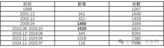 表4:1999年以来央行黄金储备(万盎司)变化情况