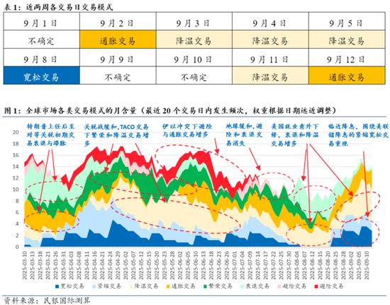 周度数据:亚特兰大联储9月10日更新的GDPNow预测数据显示,2025年三季度美国GDP预计季调年化环比+3.1%(上周为+3.1%)。9月6日当周纽约联储周度经济指数(WEI)为+2.24%(前值由+2.52%上修至+2.19%),当周红皮书商业零售同比+6.6%(前值+6.5%),当周初领失业金26.3万人(前值由23.7万下修至23.6万),前周续领失业金193.9万人(前值由194.0万下修至193.9万)。9月5日美联储资产负债表较上周+38.91亿美元(前值-13.13亿),联储银行准备金周较上周-169.92亿美元(前值-489.46亿),财政部一般账户(TGA)较上周+56.46亿(前值+661.41亿),逆回购协议+142.25亿美元(前值-244.24亿)。