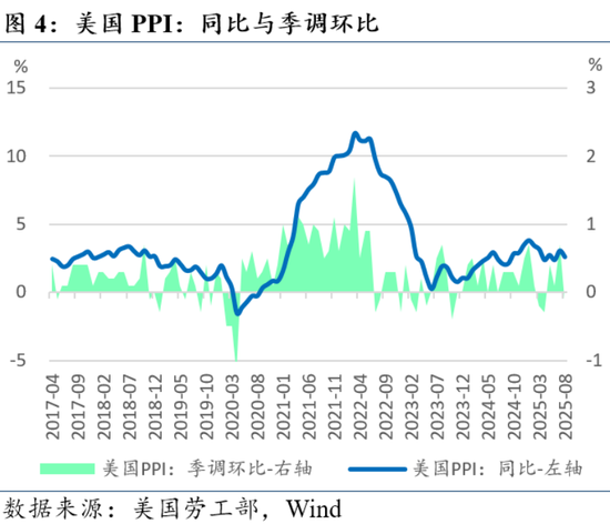 PPI低于预期且前值下修。8月PPI同比+2.6%(预期+3.3%,前值下修至+3.1%),季调环比-0.1%(预期+0.3%,前值+0.7%);核心PPI同比+2.8%(预期+3.5%,前值下修至+3.4%),季调环比-0.1%(预期+0.3%,前值+0.7%)。