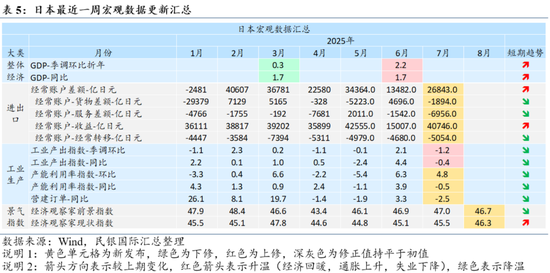 其他数据:前景指数小幅下降,营建订单下滑,工业生产小幅上修。8月日本经济观察家前景指数46.7(前值47.0),现状指数46.3(前值45.5)。7月营建订单同比-2.5%(前值+3.3%)。工业生产指数修正值季调环比-1.2%(初值-1.7%,前值-0.1%),同比-0.4%(初值-0.9%,前值+4.4%);产能利用率指数环比+4.8%(前值+6.3%),同比-0.5%(前值+3.9%)。
