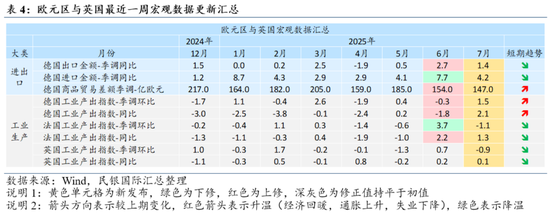 其他数据:德国工业生产回暖,法国英国减速。德国7月工业产出指数季调环比+1.5%(前值-0.3%),同比+2.1%(前值-1.8%),法国季调环比-1.1%(前值+3.7%),同比+1.3%(前值+2.2%),英国季调环比-0.9%(前值+0.7%),同比+0.1%(前值+0.2%)。