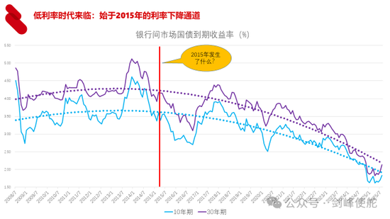 如果非金融部门都不愿意负债,本身就意味着利率不断下行。低利率实际上不是这两年才有的事情,从十年期和三十年期国债收益率来看,从2015年开始,利率就进入了下行通道。2015年发生了什么事情呢?发生了很多事情,例如,中央政府允许地方政府发债,房地产市场的上涨也是始于2015年。