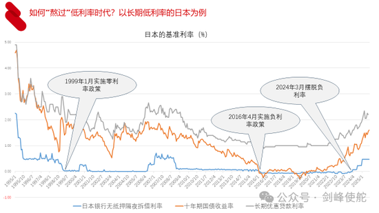 如何“熬过”低利率时代呢?我们以日本为例,日本是一个长期的低利率,从1999年甚至开始实行零利率政策,2016年开始负利率政策,直到最近,去年开始才开始摆脱负利率,尽管已经摆脱负利率,但是利率水平并不高,比如说长期优惠贷款利率大概只有2%左右。