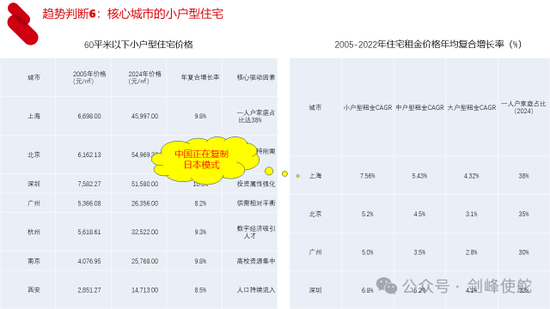 第六个趋势就是核心城市的小户型住宅。特别是观察上海的住宅租赁价格可以看到,过去20年来小户型的租金价格年均复合增长率就是超过了大户型,未来会怎么样呢?如果人口单身化的趋势会延续的话,恐怕依然是这个逻辑。