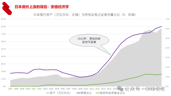 第一件事情,2012年安倍晋三上台,推出了宽松的货币政策、宽松的财政政策和结构改革,所谓的“三支箭”,从2012年开始,日本央行资产大幅度扩张,持有的国债比重从2012年的占全部国债存量的比重不到10%,上升到现在超过60%,持有的股权基金占比已经超过了10%,日本银行已经成为日本股市最大的庄家,这是一件事情,安倍经济学。