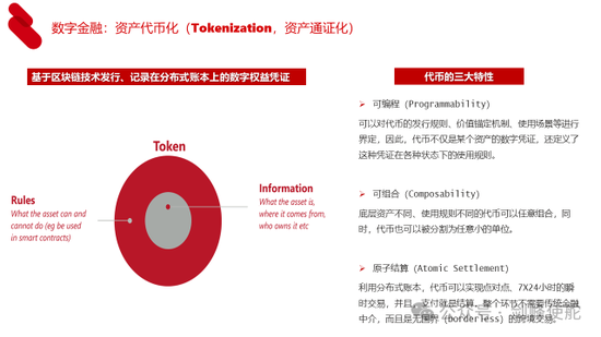 制造业的未来是工业4.0,整个经济的未来是数字经济时代。如果说金融是现代经济的核心,这也意味着数字金融一定要跟上步伐。数字金融就是最近很流行的资产代币化,就是将物理世界各种资产链接到区块链上,形成虚拟世界的可编程、可组合、可以原子结算的代币。代币大家都很熟,包括稳定币和非稳定币,基于稳定币和非稳定币,未来形成去中心化的金融,恐怕是未来金融体系新的形态。
