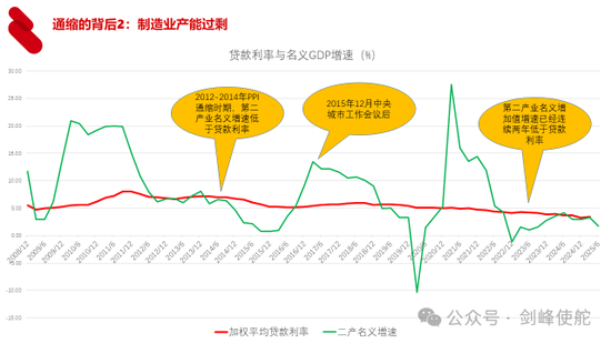 决定通胀的第二个因素就是制造业的产能过剩问题,中国人口占全球的比重1/6,我们用1/6的人口生产了全球1/3的制造产能,制造业产能过剩问题,我们从第二产业名义的增速就可以看到,从2012年开始第二产业的名义增速就已经低于加权平均贷款利率,我们知道一个经济体或者一个部门名义收入的增速如果低于贷款利率的话,就意味着新增的收入连利息都覆盖不了,就是债务不断地滚动上升,这也意味着利率的下降恐怕是长期的现象。