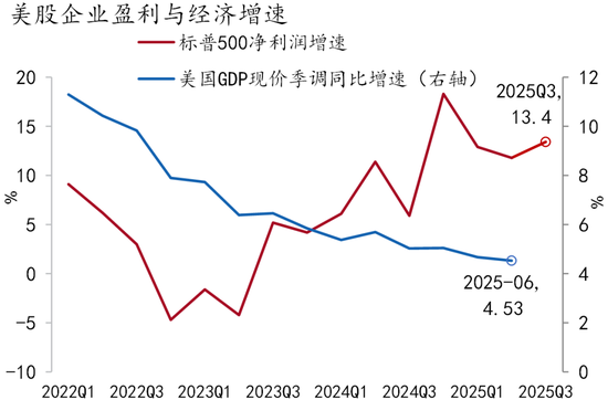 整体看,预计美股的快速上涨阶段将近尾声,过去盈利增长+估值扩张的双重驱动难以为继。未来将进入脆弱平衡时期,盈利增长仍是核心支撑,但估值上升空间收窄,市场波动加剧。