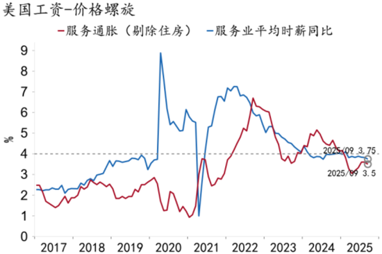 二是“双目标”或不构成降息阻力。就业方面,K型分化之下多数企业动能仍然疲弱,市场可能继续处于“低裁员、低招聘”的低流动状态。若AI劳工替代效应进一步发酵,不排除非线性转弱风险。通胀方面,关税对商品价格的冲击不及预期,楼市及就业市场均持续弱势,大幅上行暂无支撑。