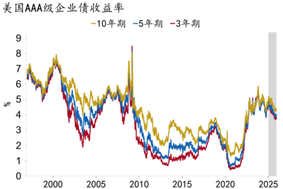 一是美联储降息重启。当前美国经济出现裂痕,例如就业市场动能放缓、信贷风险点状爆发等,通胀也并未因关税的加征而显著抬升,美联储大概率将进入连续降息周期,这将驱动美债利率进一步回落,并脱离此前的高位震荡区间。