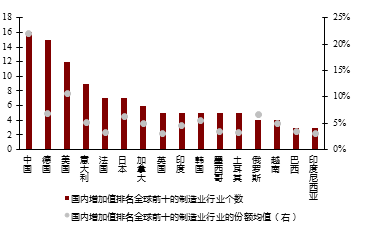 图3 中国产业“全谱系”优势及重点行业全球增加值份额(2024年)