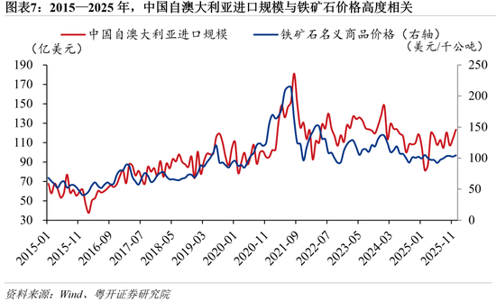受铁矿石、原油等大宗商品价格回落影响,2025年中国对澳大利亚、阿曼和伊拉克等资源型经济体的货物贸易逆差出现阶段性收窄。2025年,中国对澳大利亚、阿曼和伊拉克的货物贸易逆差额分别为539亿美元、217亿美元和168亿美元,均较上年有所收窄。中国自澳大利亚进口的主要商品是铁矿石,自阿曼和伊拉克的主要进口商品是原油,中国对其逆差规模收窄主要受铁矿石和原油价格回落影响。从价格与数量因素拆分看,2025年,中国原油和铁矿石进口数量分别增长4.4%和1.8%,但进口均价分别下降12.6%和8.6%,带动原油和铁矿石进口金额分别下降8.8%和7.1%,价格因素成为中国对部分资源型经济体货物贸易逆差收窄的主要原因。