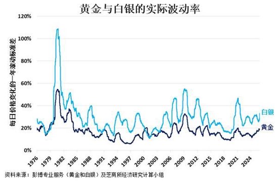 白银的部分涨幅,或反映了其相较于黄金的高β属性。白银与黄金的走势在珠宝和投资市场存在深度关联,而白银市场规模更小,往往会放大价格波动,从而体现出更高的β值。白银与黄金强相关,但波动率通常更高(图3和图4)。因此,黄金的涨跌往往会在白银的走势上表现得更为剧烈。