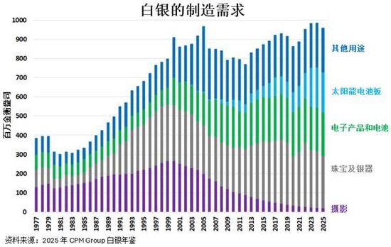 图5:白银的摄影用途减少,但太阳能电池板和电池应用增加