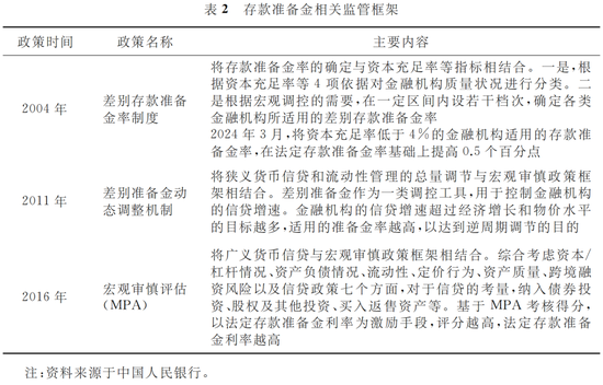 存款准备金制度亦被纳入央行宏观审慎调控框架中,旨在强化对货币信贷的逆周期调节作用。2004年,央行首次提出差别存款准备金率制度,将银行适用的存款准备金率的确定与该行的资本充足率等监管指标相结合,在法定存款准备金率的基础上,对资本充足率低于一定标准的金融机构适当上调存款准备金率。随后,2011年,央行引入差别准备金动态调整机制,通过差别存款准备金率调控金融机构的狭义信贷增速。2016年,央行建立宏观审慎评估体系(MPA),进一步将监管范围扩展至广义信贷,存款准备金利率被首次纳入调控,基于MPA考核得分,以差异化的存款准备金利率作为激励影响广义信贷投放。