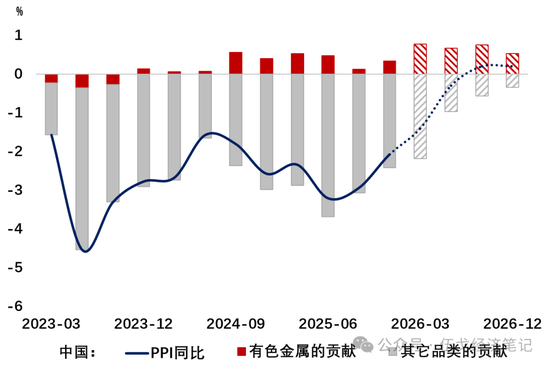 以有色金属为代表的商品价格虽有波动,但其需求的绝对规模似有提升空间。供需平衡趋紧的边际定价逻辑仍支撑其价格,对我国PPI降幅收窄的作用加大。不过,本轮全球科技、国防等支出扩张异于传统消费需求,宏观读数和微观体感之间或存差异。