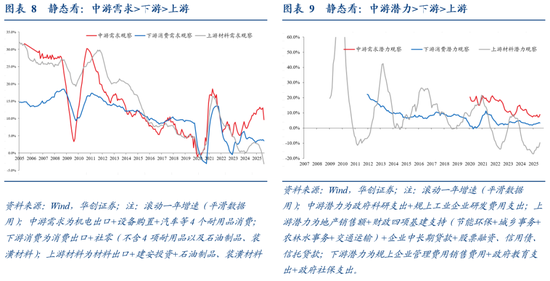 对于下游商品消费,我们构建的下游消费潜力指标同步略领先其增长,关注财政的社保、教育支出以及企业的管理、销售费用后续的变化。对于上游建筑链,建议对基建链条保持积极关注,增速回升或是大概率事件,但力度有待更多信息确认(关注1-2月的经济大省投资计划、3月两会安排的财政若干用于投资的资金总量之和以及准财政力度)。关于生活性服务业,关注政策是否会给予服务消费补贴,参考2025年耐用品消费价格的大幅好转,若有补贴,或存在价格上行弹性。