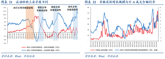 2)第二个结构是:关注非银与居民存款增速差(或居民新增存款与可支配收入比值),其回升(回落)代表居民风险偏好的变化。如果非银存款增速较居民存款抬升,意味着居民在资产配置上将存款转化为金融资产,对应其风险偏好有所抬升;历史经验来看,非银居民存款剪刀差同步于A股成交金额占A股总市值的比重,且非银存款增长规模与A股的成交金额基本保持走势一致。我们目前的判断是,2026年居民或继续存款搬家,但变化幅度上,非银从实体部门融资规模或难以维持2025年35%的增速(注:2025年非银机构从实体融资数据来看,已达到历史极高位置)。对应A股成交额或大体维持2025年水平,进一步再上一个台阶可能有困难。