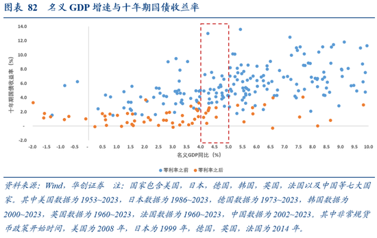 对于债,在各国开启非常规的货币政策之前(对应政策利率降至0%之前),4%-5%的名义GDP增速大致对应十年期国债收益率在2%-5%之间。1.5%-2.5%的股息率大致对应十年期国债收益率在2%-5%之间。截至2025年9月30日,十年期国债收益率约为1.86%。万德全A股息率约为1.81%,沪深300的股息率约为2.56%。即,与名义GDP、股息率相比,当前十年国债收益率已略偏低。
