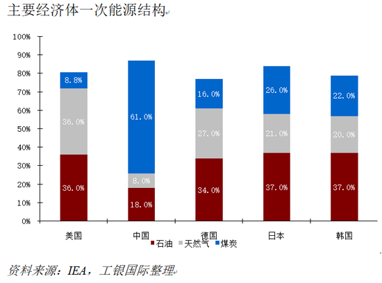 就权重来看,根据IEA(国际能源署International Energy Agency)的TES(Total Energy Supply)统计口径,石油在中国一次能源结构占约18%,远低于美国(36%)、日本(37%)、韩国(37%)、德国(34%)。中国能源消费的主体是煤炭和清洁能源,前者国内供应充足、价格由国内市场主导,后者基本不受国际化石能源价格影响。这意味着国际油价波动对中国整体能源成本的传导天然被稀释。