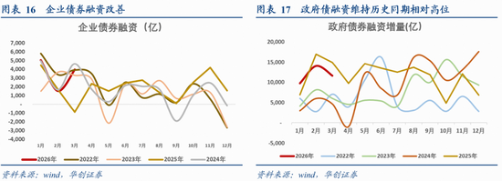 对金融市场的流动性而言,3月涨价暂未在宏观上引致风险偏好的回落。从量上看,非银存款与居民存款的剪刀差同步与万得全A成交金额占流通市值的比重,3月非银存款与居民存款剪刀差进一步走阔;从价上看,居民新增存款/新增M2与万得全A的市净率呈反向,3月该指标也进一步下行。不过,值得注意的,结合银行扩表程度来看,年内居民新增存款与新增M2比值或难以进一步下行,因此我们仍然提示,2026年权益资产估值或难以进一步提升,资本市场应该更重视基本面的变化。