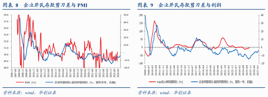 ①实体经济的运转来自于居民和企业之间的循环,我们领先企业利润同比一年的企业居民存款剪刀差已经连续19个月震荡向上修复。