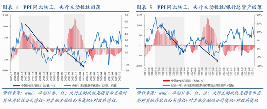第三,PPI同比转正或预示央行投放力度放缓。我们以央行各类再贷款以及公开市场操作的净投放规模来衡量央行主动投放的力度。2015年以来的两轮周期,当PPI同比转正期间,央行主动投放的规模趋势回落,而当PPI同比转负期间,央行主动投放的规模则趋势抬升。从这个视角来看,PPI同比的正或预示央行投放流动性的“收”,而PPI同比的负或带来央行投放流动性的“放”。
