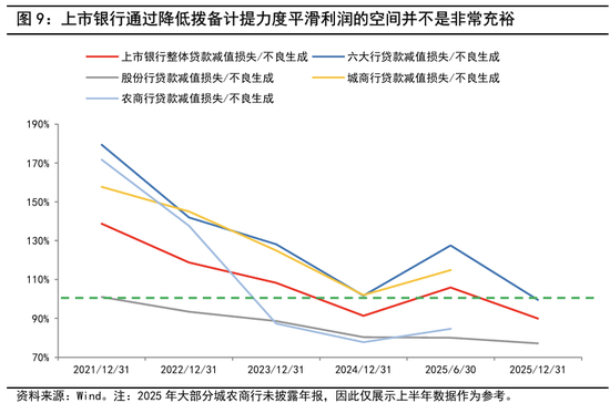 根据我们此前的报告,我们预计上市银行2026年息差降幅明显收窄,营业收入增速显著好转,这将为银行拨备计提打开空间。预计银行也会相应主动加大存量隐性不良的暴露,类似一次“净表计划”,同时也将减少通过拨备平滑利润的操作,这短期内可能导致利润增速低于营收增速,但长远看有利于化解风险以及充分计提减值,使银行未来轻装上阵。
