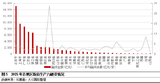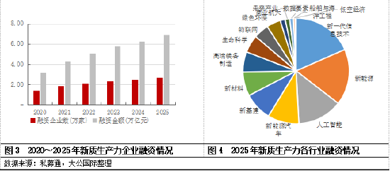 近年来,新质生产力发展规模逐渐增加,企业数量及融资金额均持续增长,但同比增速有所放缓。从行业分布来看,新一代信息技术、新能源、人工智能和新能源汽车四个行业融资金额占比超50%,行业分布较为集中。从地区分布来看,融资集中在经济发达地区,北京市、上海市、广东省、江苏省和浙江省五个地区融资金额断层领先于其他地区。整体而言,新质生产力融资金额呈现增速放缓、行业及地区分布不均的特点。