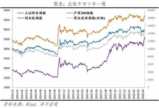 政策牛:2024年924是宏观政策放松的历史性拐点,货币政策持续降息降准,楼市持续放松限购,财政10万亿化债,不断加强民营经济保护,万亿水电站基建投资推出,发展新质生产力重磅措施持续推出,等等。政策大幅超出市场预期,带来了风险偏好的大幅提升,无风险利率的持续下降,进而引爆了此轮牛市。同时,2025年5月前后,中美关税战缓和、国内新质生产力发展取得重大突破、政策层面鼓励资本市场并购重组等也一起提升了市场风险偏好。924是分水岭,之前宏观政策处于观察周期,之后处于持续的放松周期,我们仍处在宏观政策的放松周期之中。